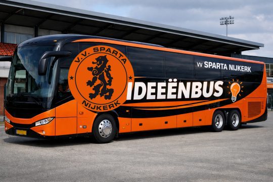 Vertrek supportersbus v.v. Sparta Nijkerk naar Rijssen