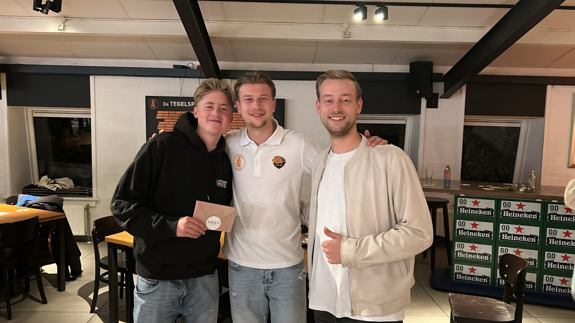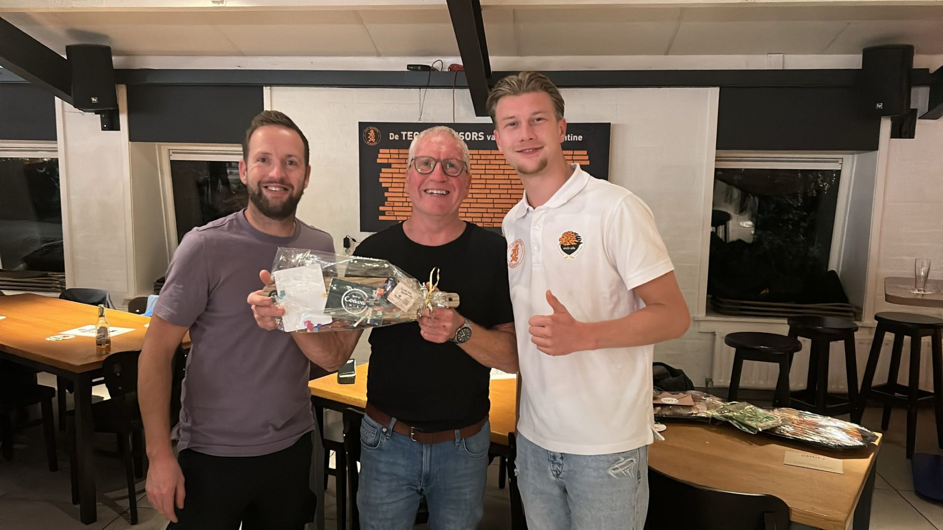 De eerste prijs en dus winnaar van de winnaarsronde was “Flamingo’s”. Zij wonnen de finale door te winnen van “Joran en Ingmar”. (Vooraf trouwens als grootste en absoluut favoriet geopperd door meestervoorspeller Joran zelf). Eerste prijs was een mooi pakket (zelfs 2) van De Poelier Shop Nijkerk. De tweede prijs een bon van Niels Bistro & Bar.