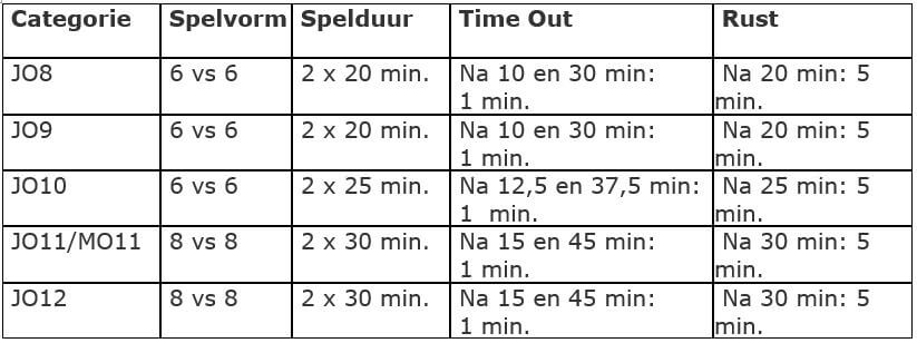 Het betreft de wedstrijden in de categorieën JO8, JO9, JO10, JO11, MO11 en JO12.