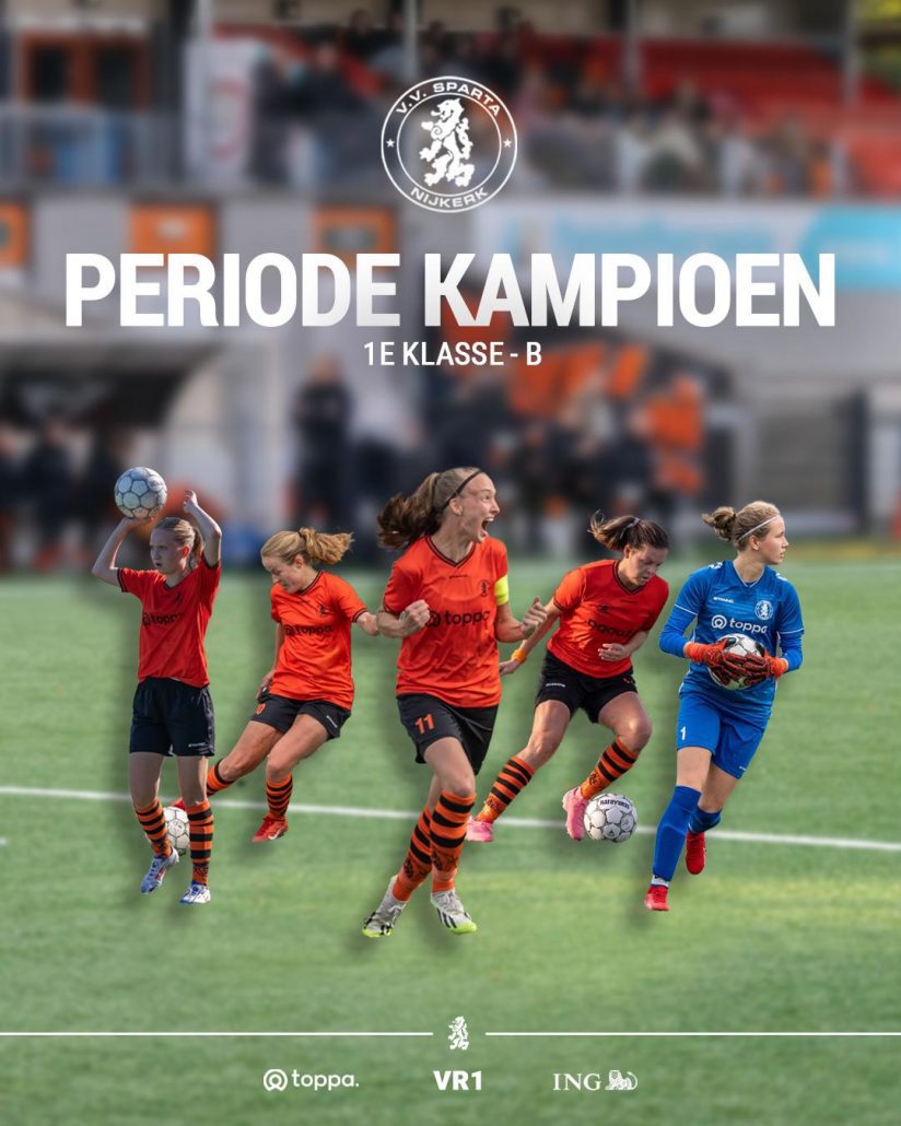 De vrouwen van Sparta Nijkerk hebben zaterdag de 1e periodetitel veroverd middels een 2-1 overwinning op SDC Putten VR1. Daarmee is de ploeg al in een vroeg stadium verzekerd van deelname aan de nacompetitie voor promotie naar de hoofdklasse.