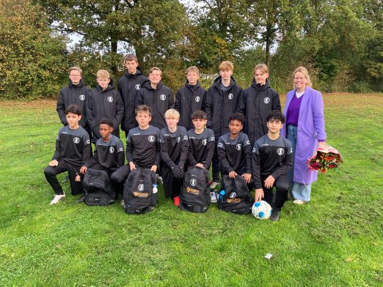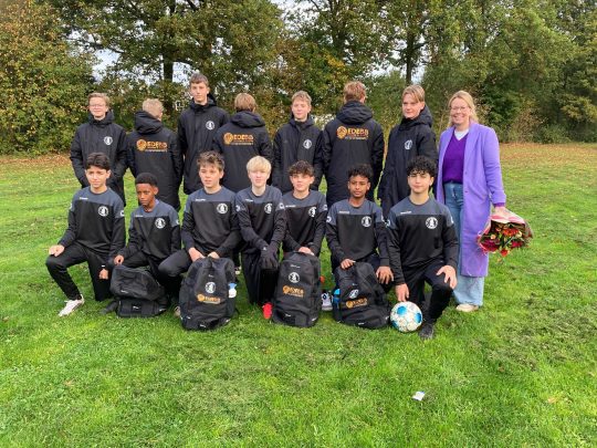 De JO15-2 ziet er weer keurig uit. Zo kreeg het team een nieuwe tas, trainingsbroek, trainingstrui en een jas!