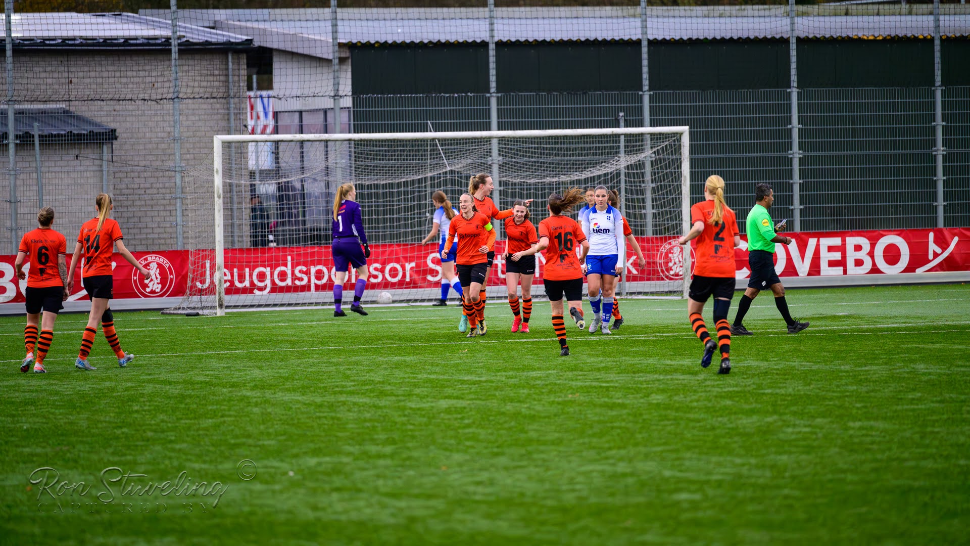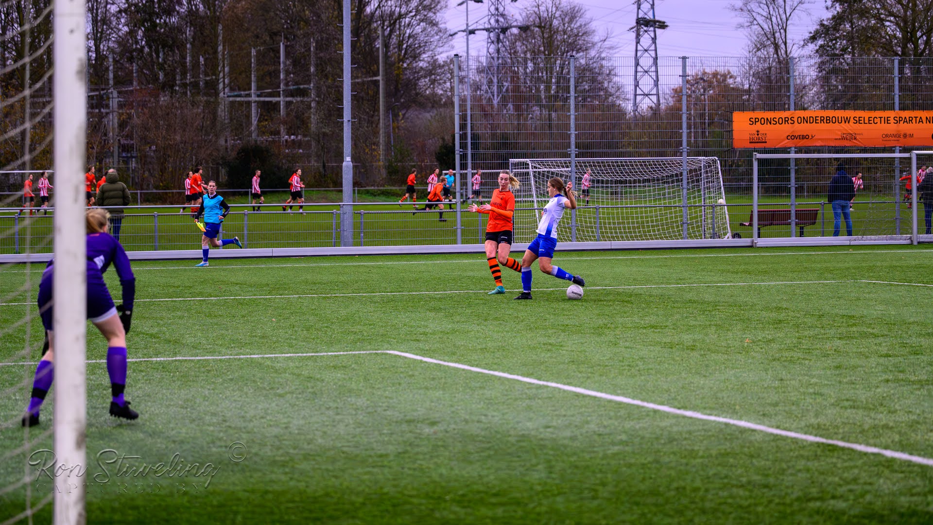 Sparta Nijkerk kreeg gaandeweg de 1e helft wel steeds meer grip op de wedstrijd. Mareine Koole had pech met de afwerking toen ze in de 28e minuut de paal raakte. Na nog een paar goede kansen, was het uiteindelijk Jolien van Looijengoed die Sparta Nijkerk op voorsprong zette in de 45e minuut (assist Daphne Buxtorff). Het werd zelfs nog mooier toen Lotte van Diermen ver in blessuretijd ook de 4-2 scoorde met een fraai afstandsschot.