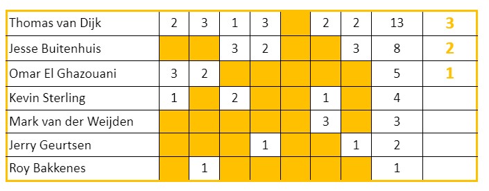 Tijdens competitiewedstrijden worden er door enkele supporters cijfers gegeven aan de beste spelers van Sparta Nijkerk 1. In principe gaat het hierbij om 6 punten, meer indien nodig. Normaal gesproken zijn deze te verdelen in 3,2 en 1 punt, behalve bij gelijke standen kan het voorkomen dat punten anders moeten worden verdeeld in bijv. 2,2,1 en 1 of 3 en 3 etc. etc.