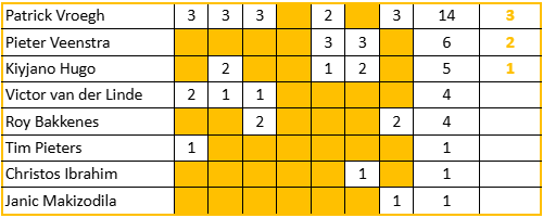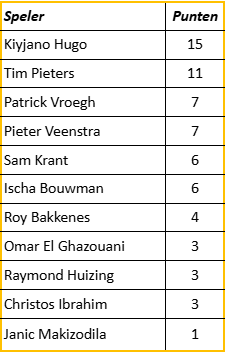 Ranglijst seizoen 2025-2026 (bijgewerkt t/m 25-10-2025)