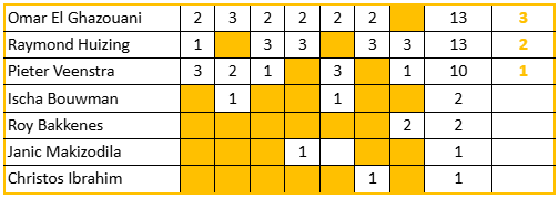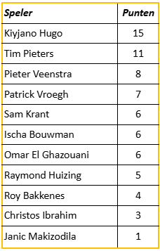 Ranglijst seizoen 2025-2026 (bijgewerkt t/m 8-11-2025)