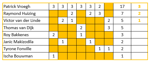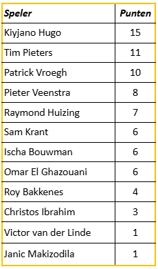 Tijdens competitiewedstrijden worden er door een groepje enkele supporters punten gegeven aan de beste spelers van Sparta Nijkerk 1. Het gaat hierbij om 6 punten, meer indien nodig. Normaal gesproken zijn deze te verdelen in 3, 2 en 1 punt, behalve bij gelijke standen kan het voorkomen dat punten anders moeten worden verdeeld in bijvoorbeeld 3,2,1,1 of 3,2,2 etc.
