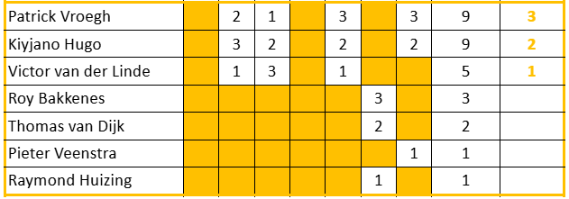 Ranglijst seizoen 2025-2026 (bijgewerkt t/m 22-11-2025)