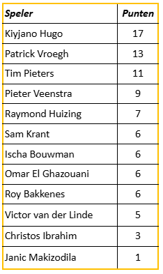 Tijdens competitiewedstrijden worden er door een groepje enkele supporters punten gegeven aan de beste spelers van Sparta Nijkerk 1. Het gaat hierbij om 6 punten, meer indien nodig. Normaal gesproken zijn deze te verdelen in 3, 2 en 1 punt, behalve bij gelijke standen kan het voorkomen dat punten anders moeten worden verdeeld in bijvoorbeeld 3,2,1,1 of 3,2,2 etc.