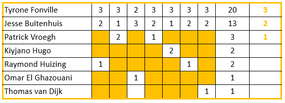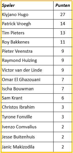 Ranglijst seizoen 2025-2026 (bijgewerkt t/m 31-1-2026)