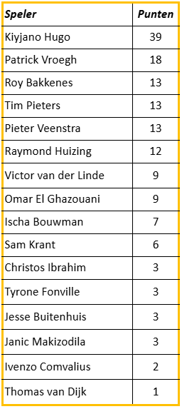 Tijdens competitiewedstrijden worden er door een groepje enkele supporters punten gegeven aan de beste spelers van Sparta Nijkerk 1. Het gaat hierbij om 6 punten, meer indien nodig. Normaal gesproken zijn deze te verdelen in 3, 2 en 1 punt, behalve bij gelijke standen kan het voorkomen dat punten anders moeten worden verdeeld in bijvoorbeeld 3,2,1,1 of 3,2,2 etc.