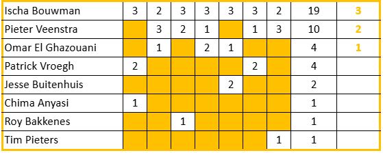 Ranglijst seizoen 2025-2026 (bijgewerkt t/m 28-3-2026)