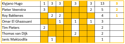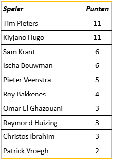 Ranglijst seizoen 2025-2026 (bijgewerkt t/m 11-10-2025)
