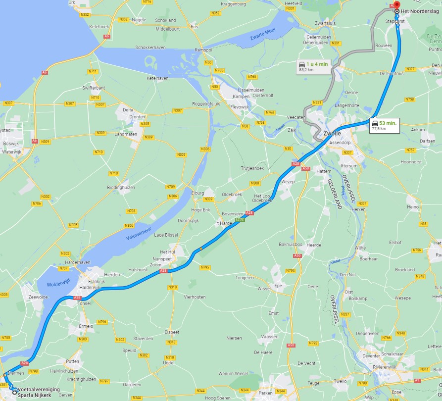 Zaterdag 18 oktober as. vertrekt de supportersbus van vv Sparta Nijkerk om 12.45 uur richting Staphorst, waar het eerste elftal op sportpark Het Noorderslag aan de Parallelweg 27 om 14.30 uur speelt tegen het gelijknamige Staphorst.