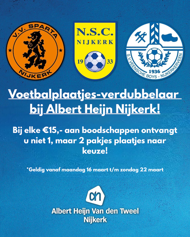 Dat betekent: 👉 Bij iedere €15 aan boodschappen krijg je niet 1, maar 2 pakjes voetbalplaatjes!